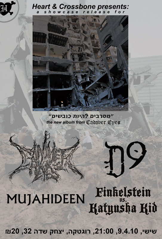 We’re celebrating a new release by the awesome Cadaver Eyes — “מסרבים להיות כובשים” — on Friday (April 9th), at the Rogatka.