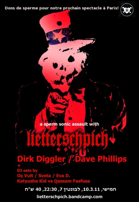 Before we go, we plan one night of live acoustic filth extravaganza in Tel Aviv, with the help of the mighty Dave Phillips and Dirk Diggler. There’s also an impressive line-up of DJs, including Oz Vult, Eva D., Sinister Sveta and Katyusha Kid.