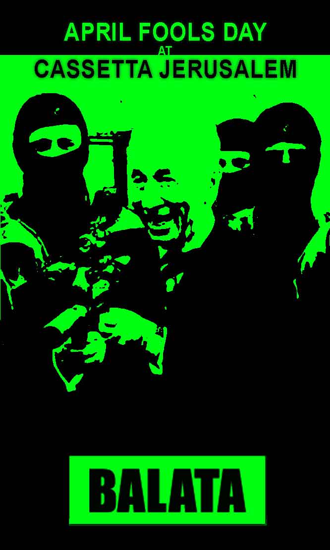 Balata celebrating April Fool’s Day March 26, 2012 · by finkelbert · Bookmark the permalink. · Balata will play live at Jerusalem’s Cassetta on April Fool’s Day — Balata’s national holiday! Sunday, April 1st, 22:00 (Facebook event)